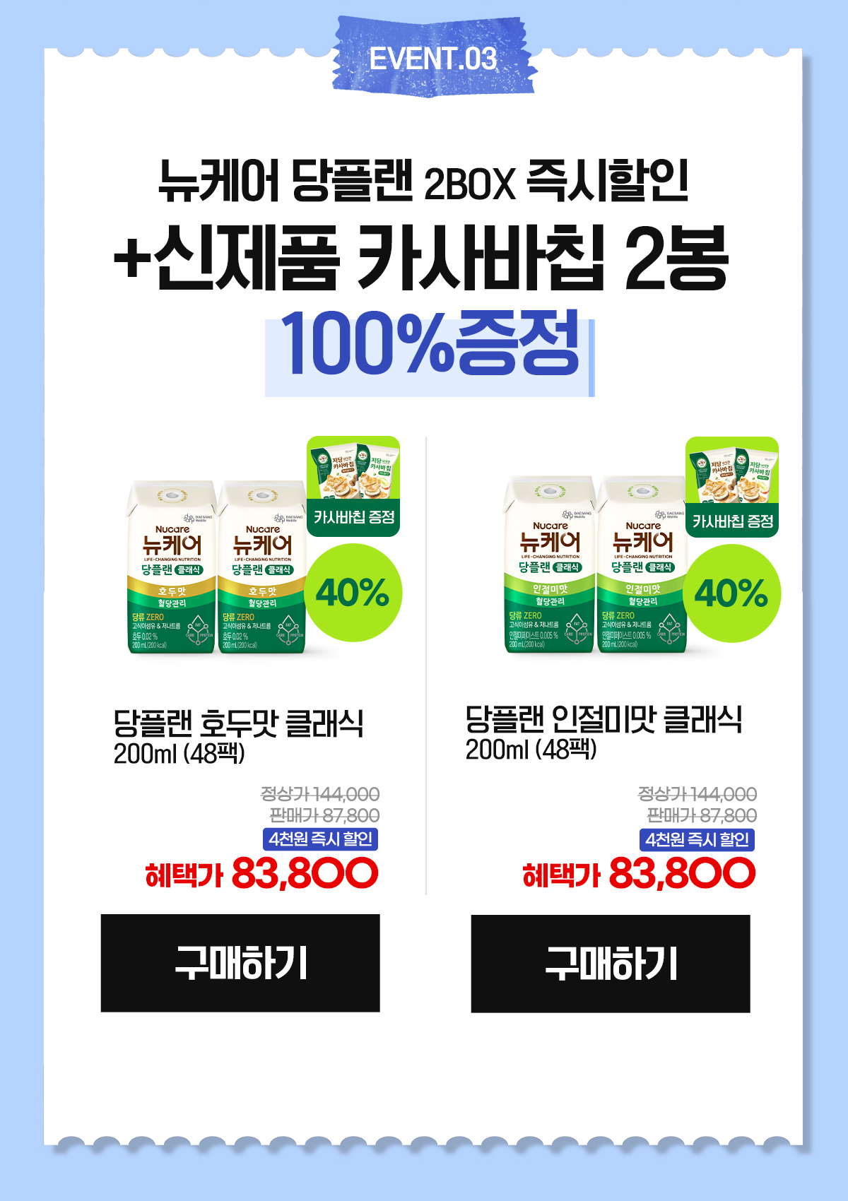 [세계 당뇨병의 날] 당플랜 호두맛 클래식 (빨대형) 200ml (24팩) + 인절미맛 클래식 (빨대형) 200ml (24팩) + 당플랜 저당 카사바칩 (2봉) 증정
