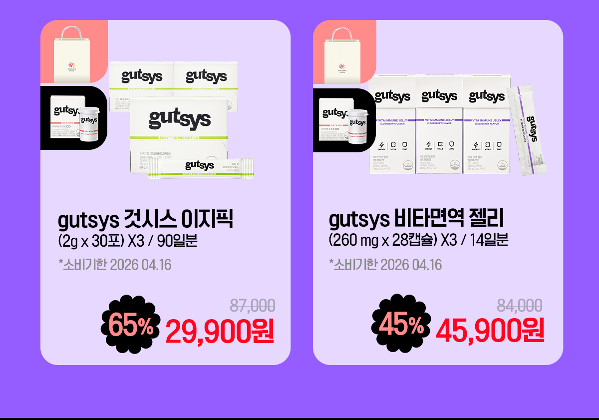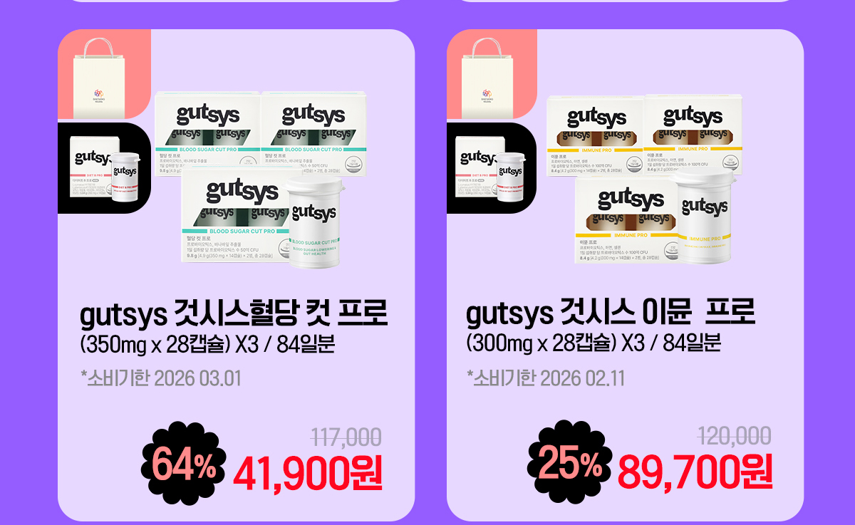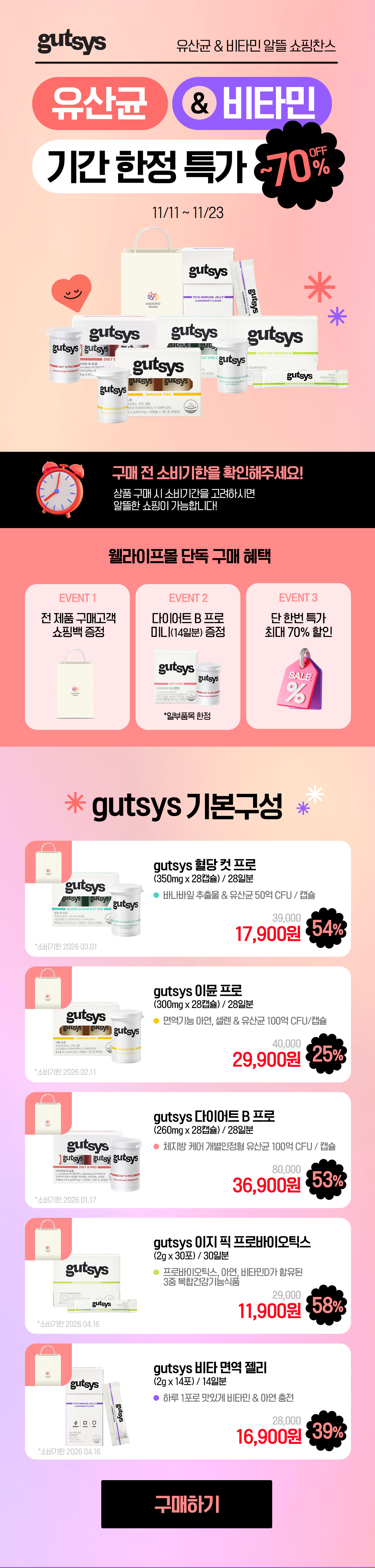 [것시스 이벤트] gutsys 것시스 이뮨 프로 (300 mgx28캡슐)X3 /84일분 (소비기한 : 2026.02.11) + 다이어트 B프로 미니 1EA 증정 + 쇼핑백 증정