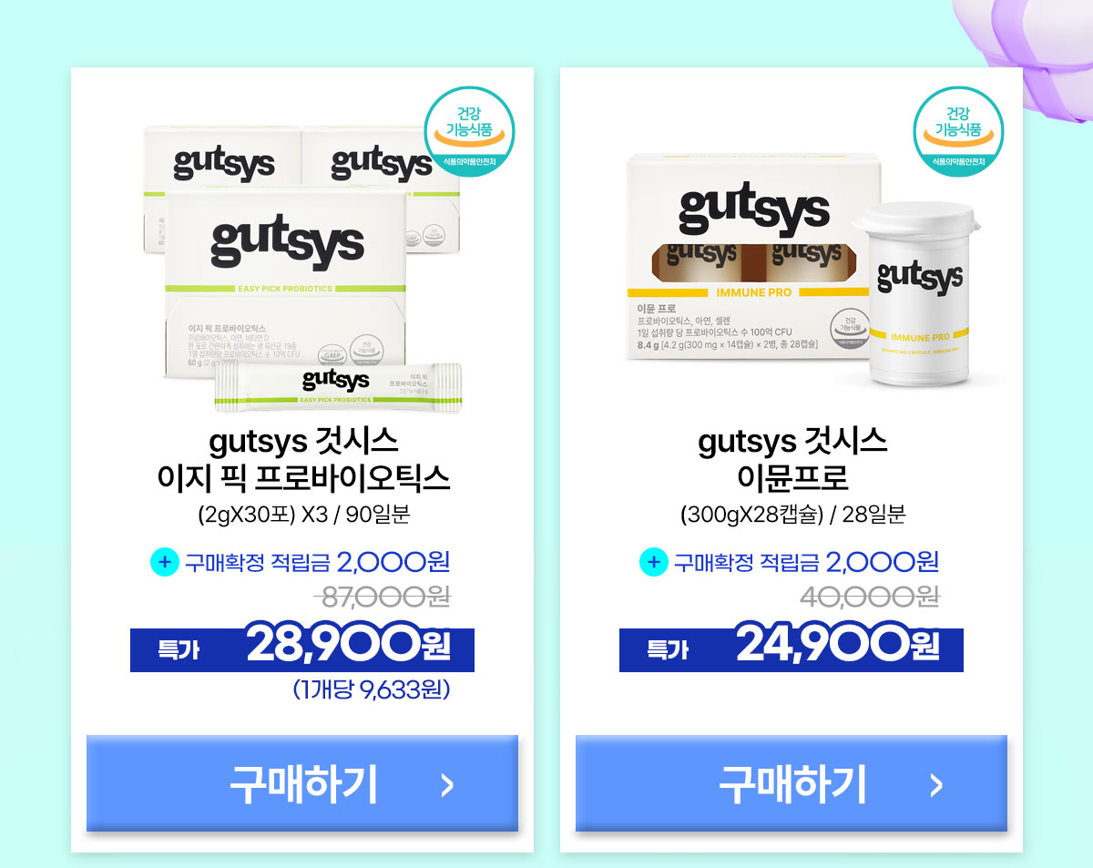 [2월 이벤트] gutsys 것시스 이지 픽 프로바이오틱스 (2 gx30포)X3 /90일분 + 적립금 2,000원 증정