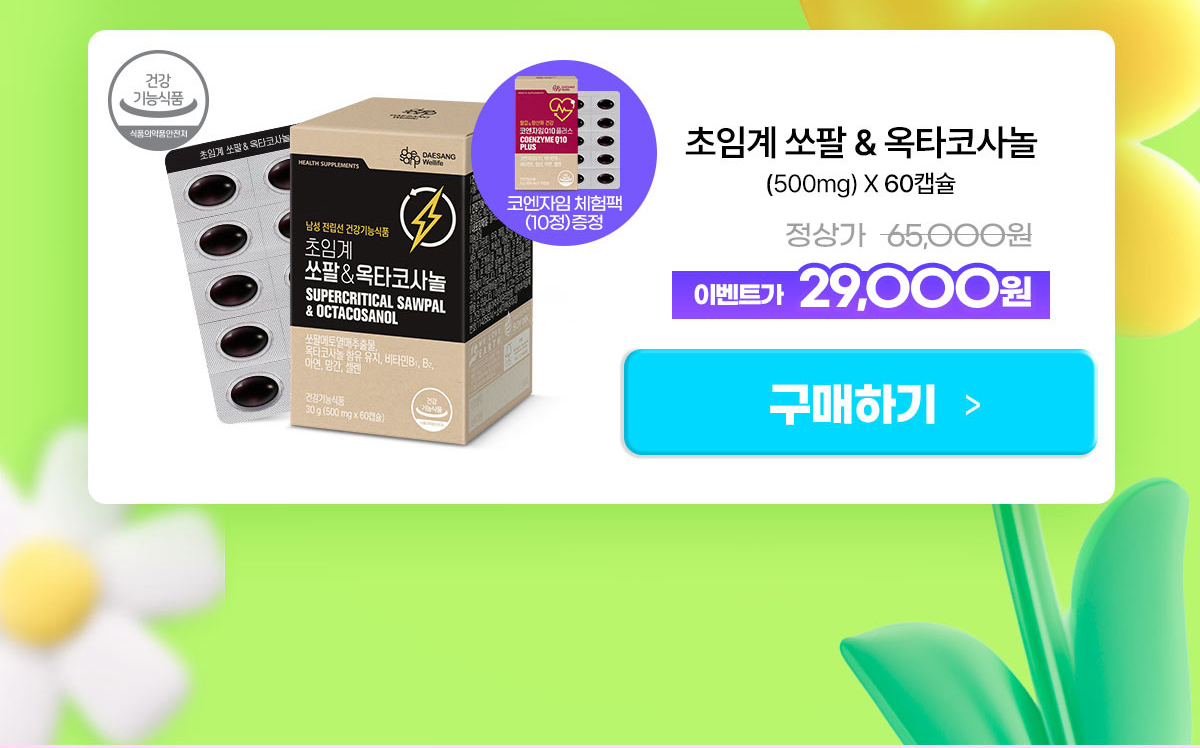 [봄새학기 더블혜택] 초임계 쏘팔&옥타코사놀 (500 mgx60캡슐) /60일분 + 코엔자임 체험팩 (10정) 증정