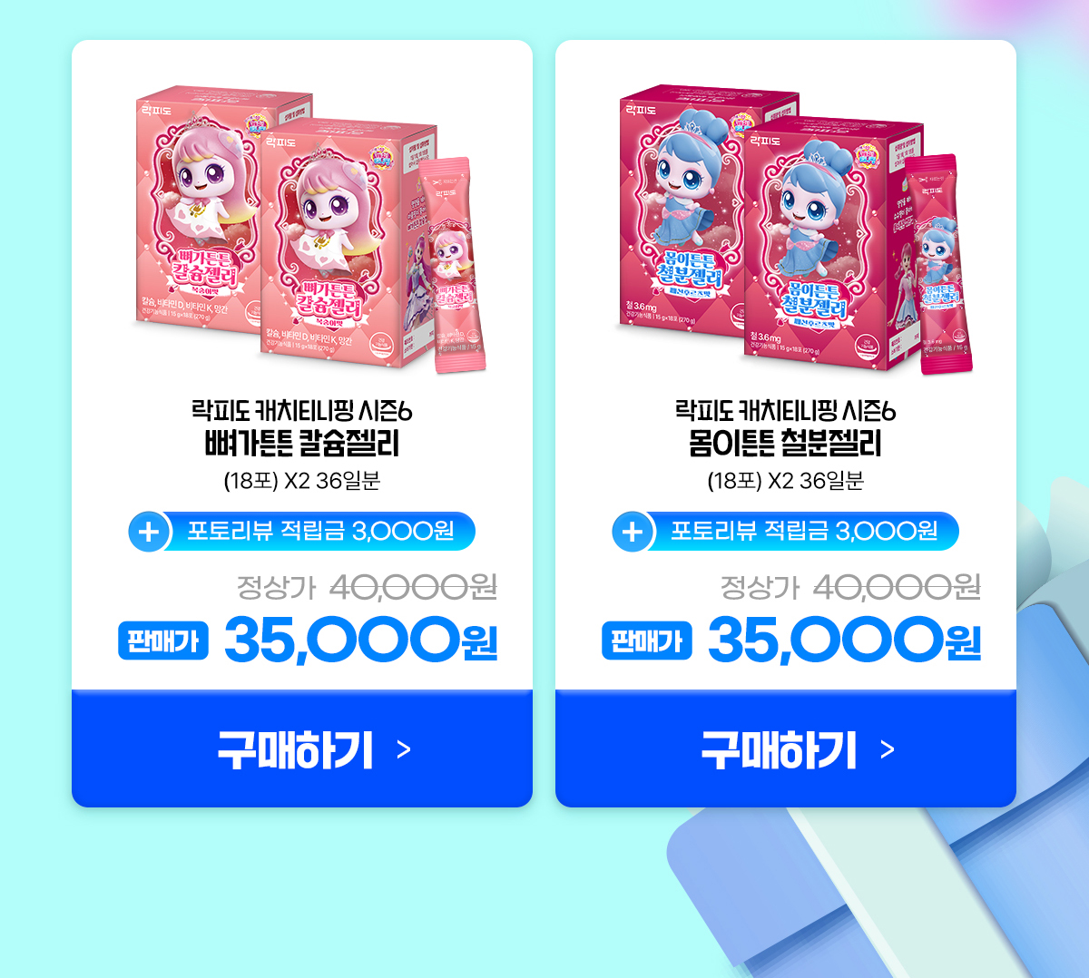 [3월 이벤트] 락피도 캐치티니핑 시즌6 뼈가튼튼 칼슘젤리 (15 g×18포)X2 /36일분 + 포토리뷰 작성시 적립금 3,000원 적립 (4월 4주차/ID당1회)