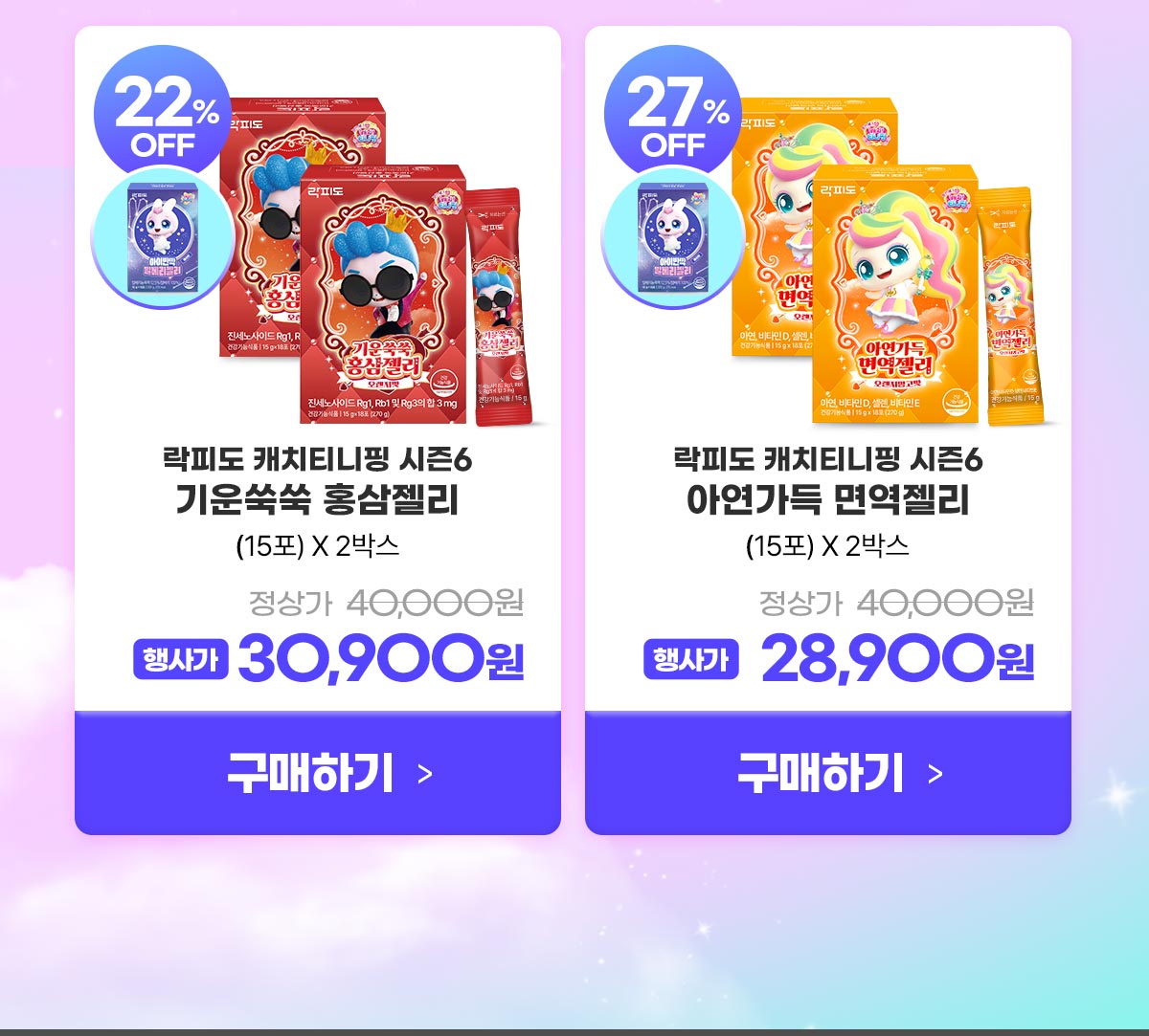 [락피도 온가족 기획전] 락피도 캐치티니핑 시즌6 기운쑥쑥 홍삼젤리 (15 g×18포)X2 /36일분 + 아이반짝 빌베리젤리 1개 증정