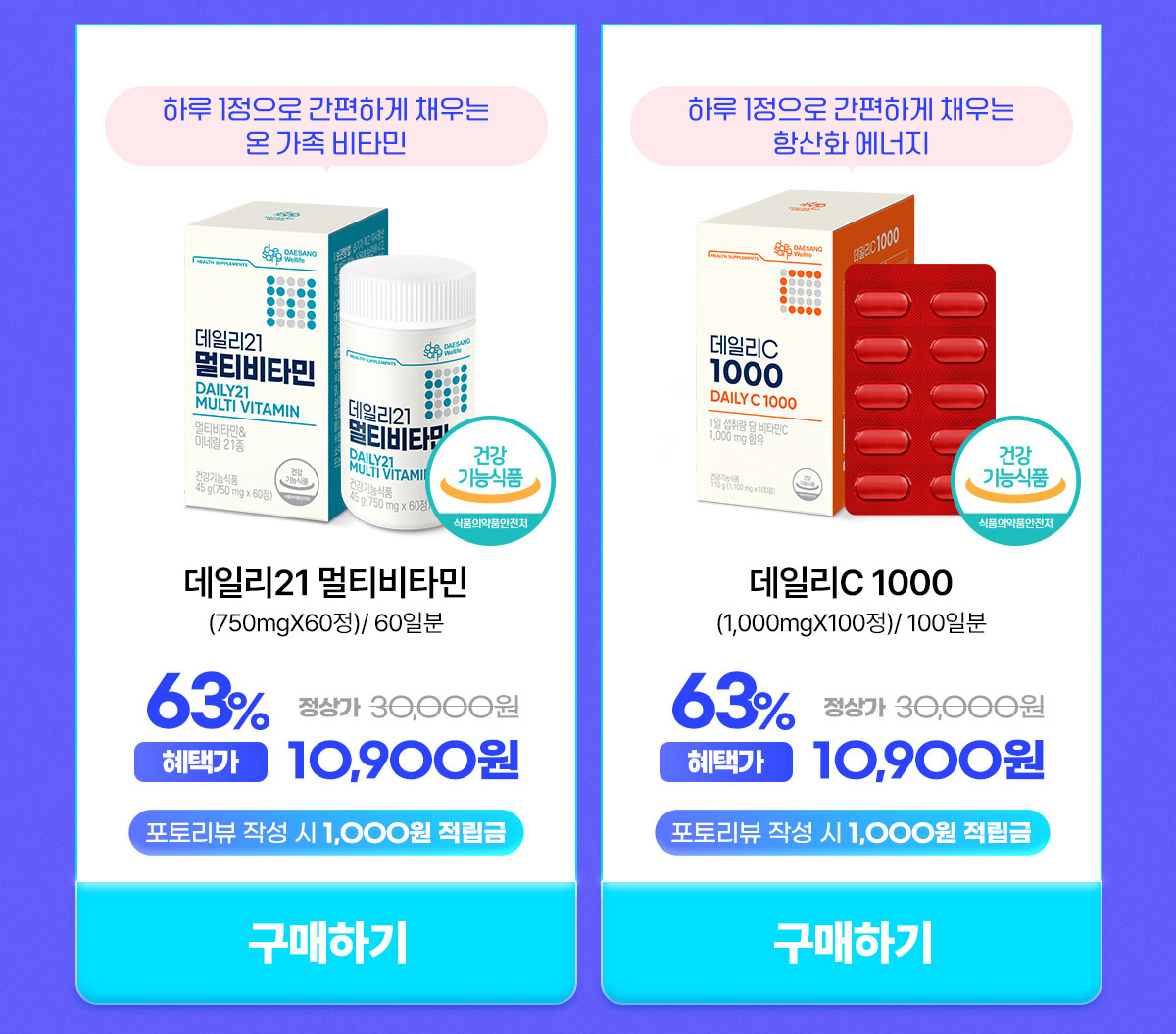 [신제품 출시 이벤트] 데일리C 1000 (1,000 mgX100정) /100일분 + 포토리뷰 작성시 적립금 1,000원 적립 (2월 4주차 지급/ID당 1회)