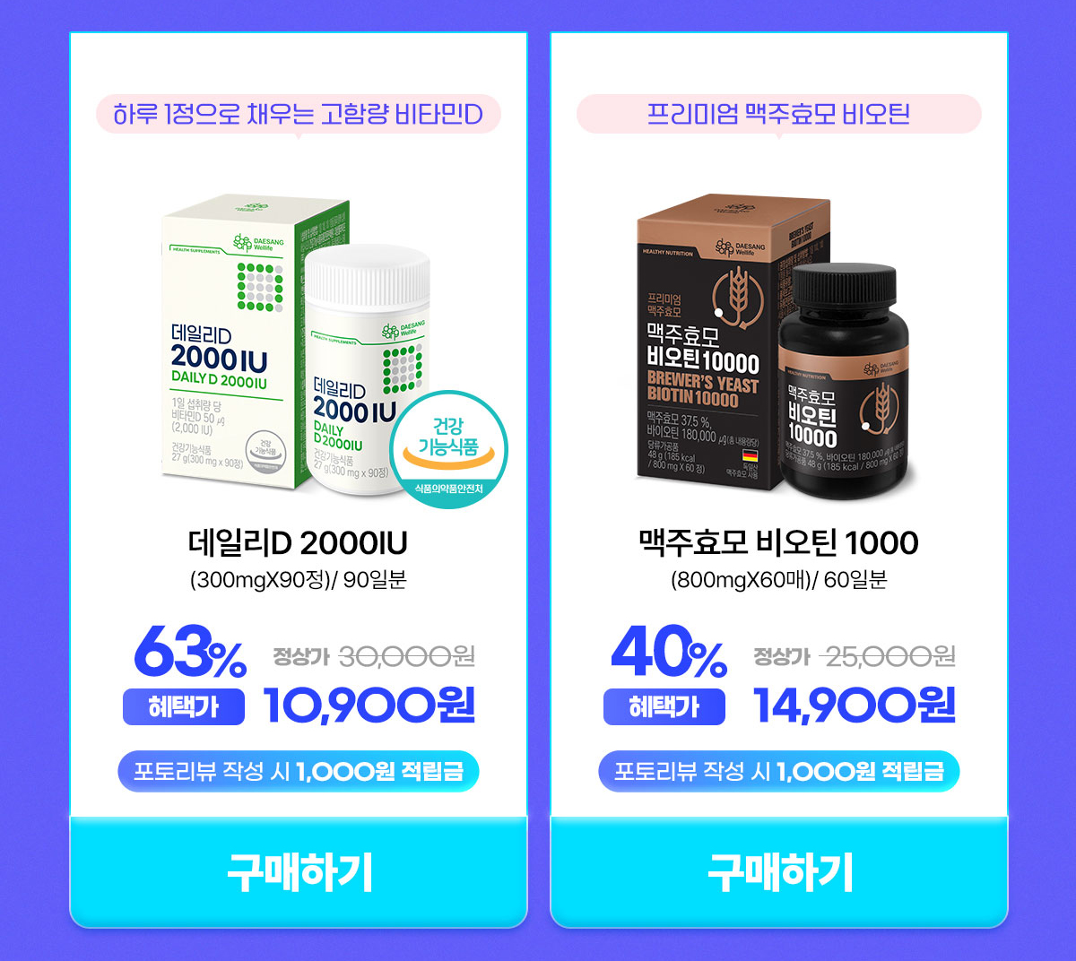 [신제품 출시 이벤트] 데일리D 2000IU (300 mgX90정) /90일분 + 포토리뷰 작성시 적립금 1,000원 적립 (2월 4주차 지급/ID당 1회)