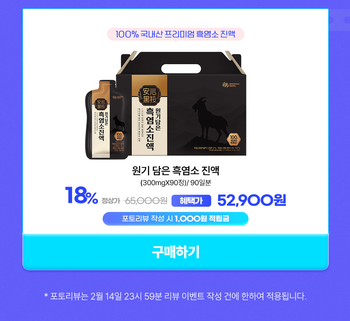 [신제품 출시 이벤트] 원기담은 흑염소 진액 (70 mlx30포) + 포토리뷰 작성시 적립금 1,000원 적립 (2월 4주차 지급/ID당 1회)
