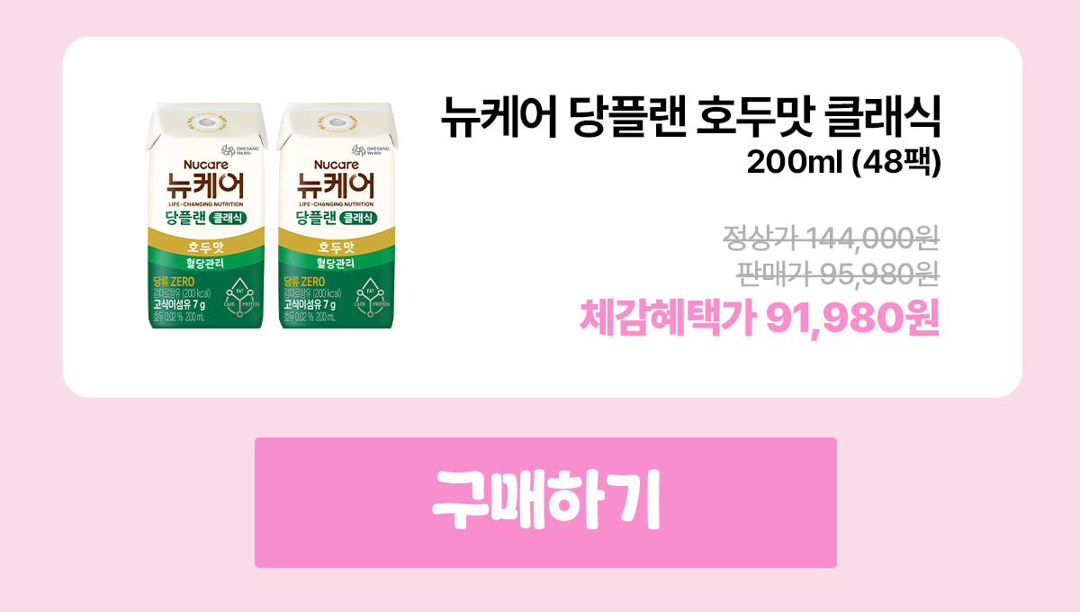 [뉴케어 봄이벤트] 뉴케어 구수한맛 클래식 (빨대형) 200ml (24팩) + 당플랜 호두맛 클래식 (빨대형) 200ml (24팩) + 적립금 4,000원 증정