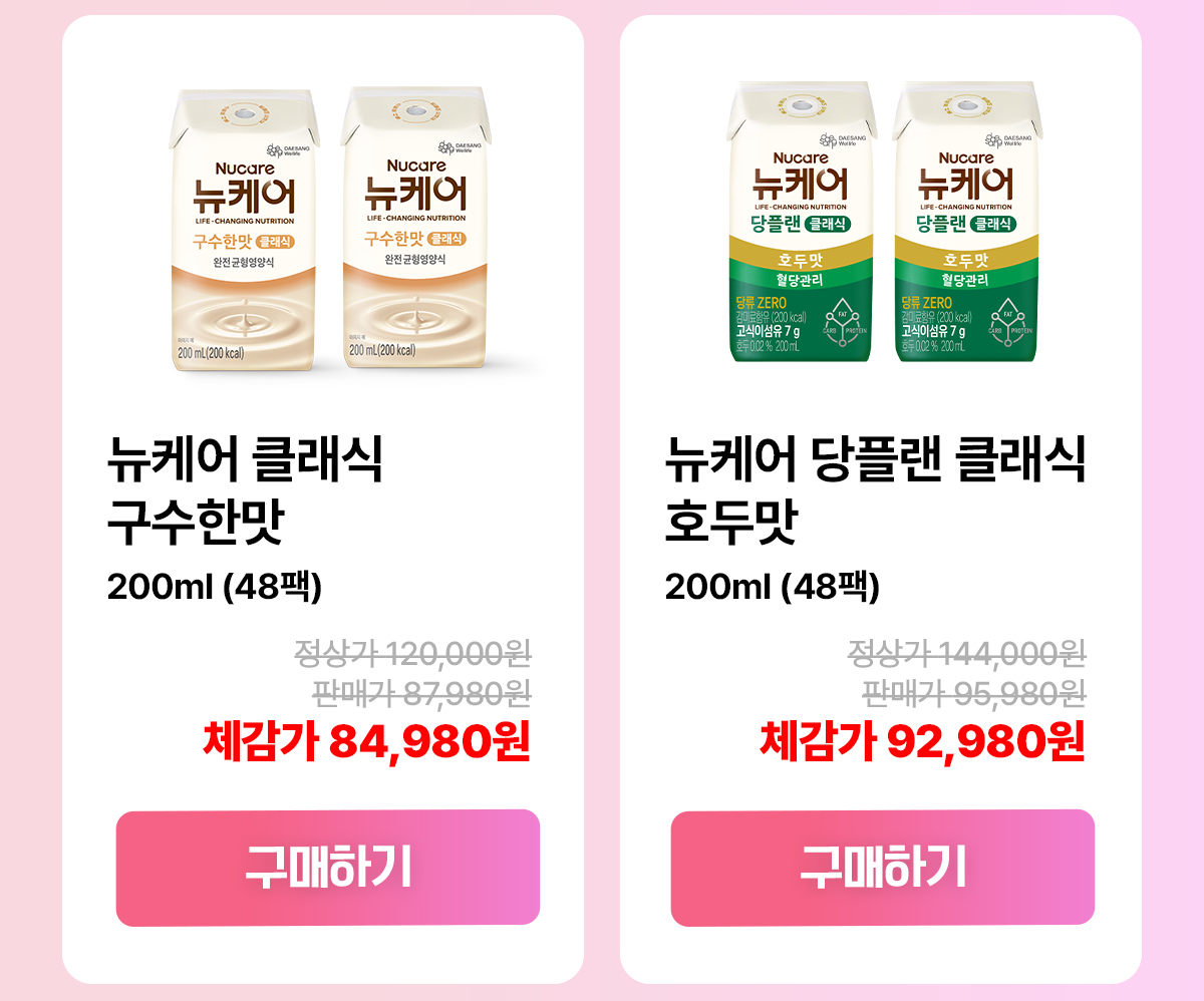 [가정의달 패밀리세일] 뉴케어 구수한맛 클래식 (빨대형) 200ml (24팩) + 당플랜 호두맛 클래식 (빨대형) 200ml (24팩) + 적립금 5,000원 증정