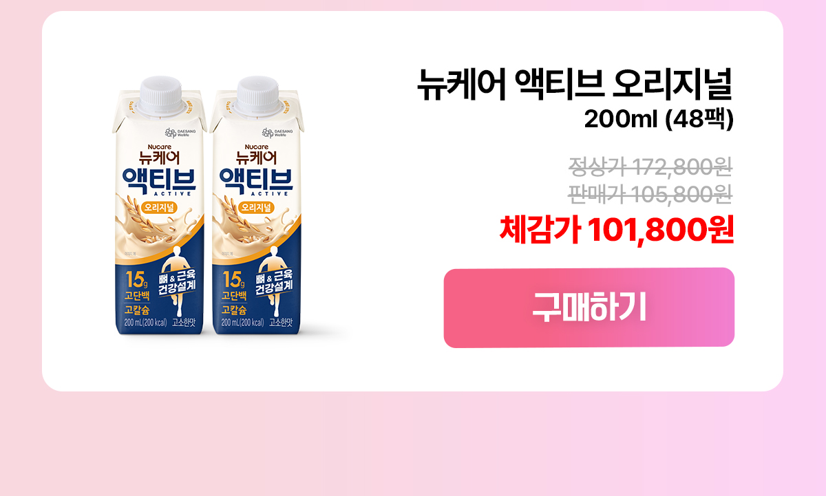 [가정의달 패밀리세일] 뉴케어 액티브 오리지널 200ml (48팩) + 적립금 4,000원 증정
