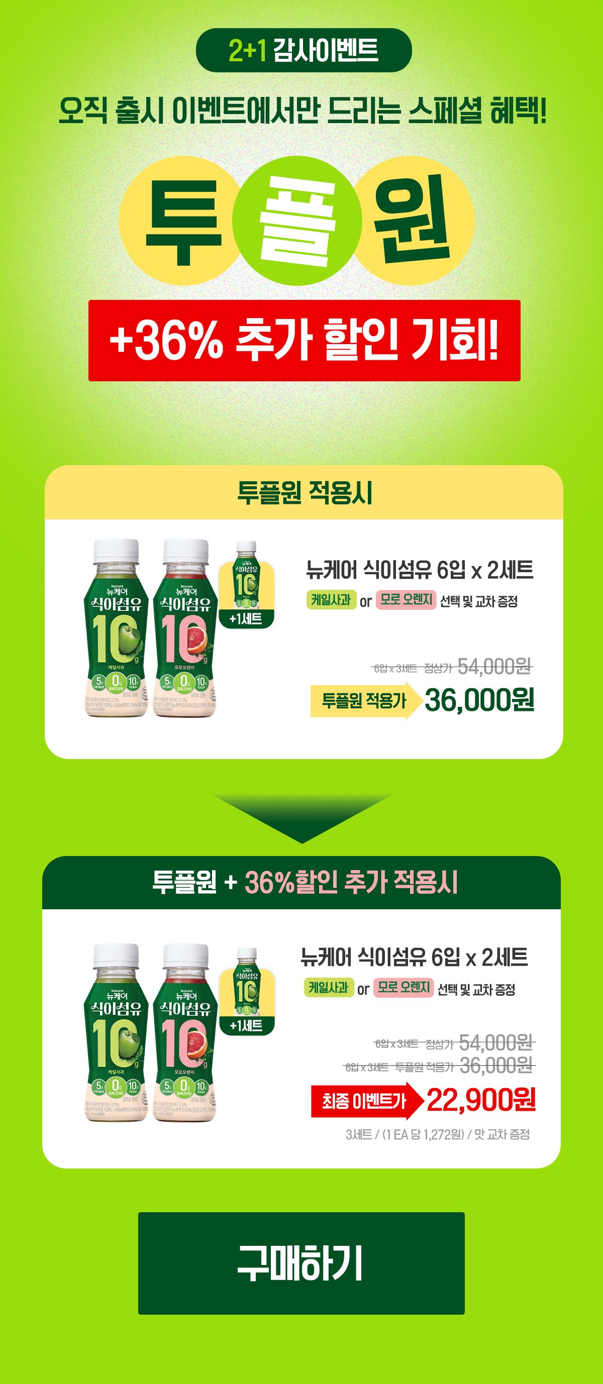 [출시기념 예약구매] 뉴케어 식이섬유 10g 케일사과맛 (6입)X3 + 포토리뷰 작성시 적립금 3,000원 적립(11월 4주차 지급/ID당 1회) / 10.24 순차출고