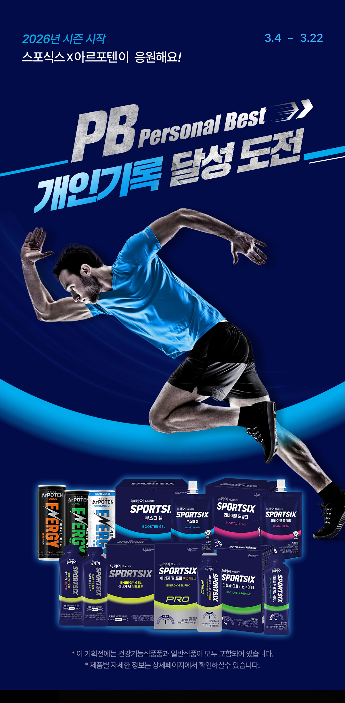 [10K 레이스 패키지] 뉴케어 스포식스 에너지 젤 청포도맛 (45g×8포) 1EA + 스포식스 아르기닌 부스터 (24gX10포) 6000 1EA