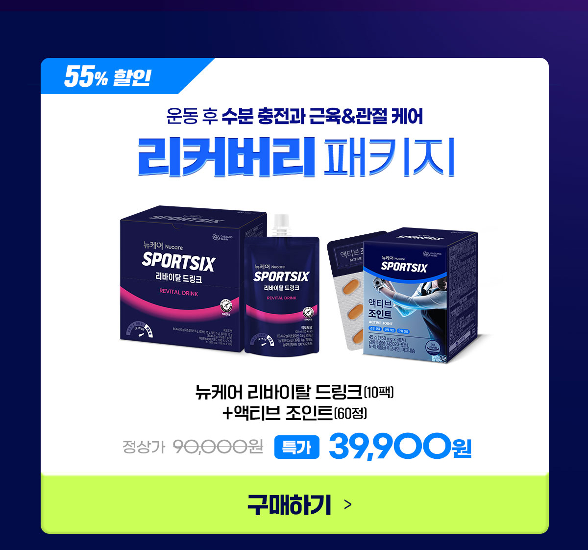 [리커버리 패키지] 뉴케어 스포식스 리바이탈 드링크 (100ml×10팩) 1EA + 뉴케어 스포식스 액티브 조인트 (750 mgX60정) 1EA