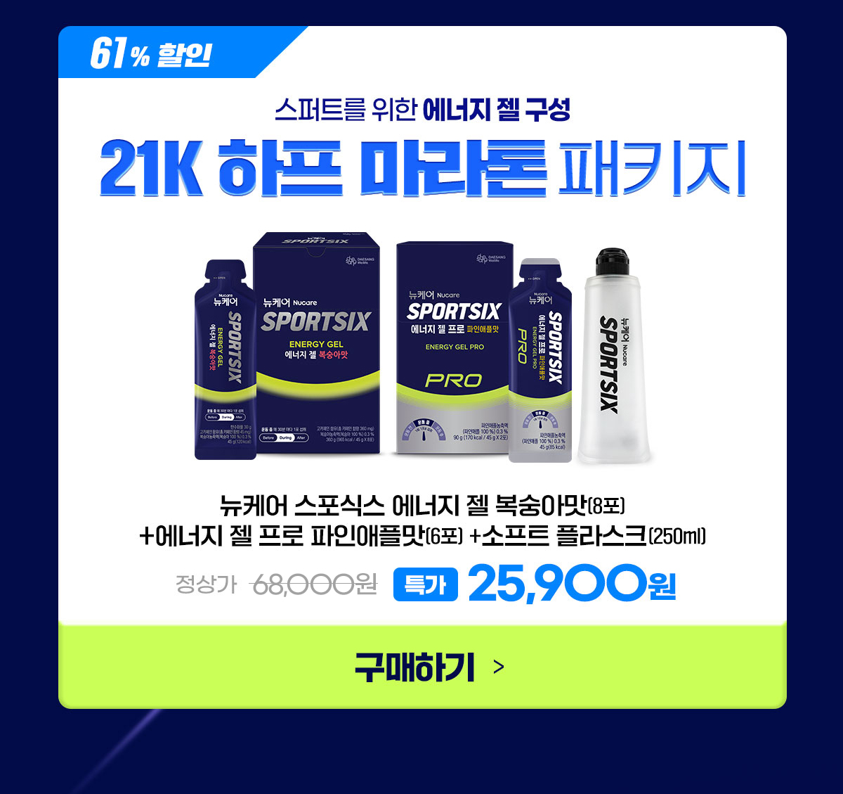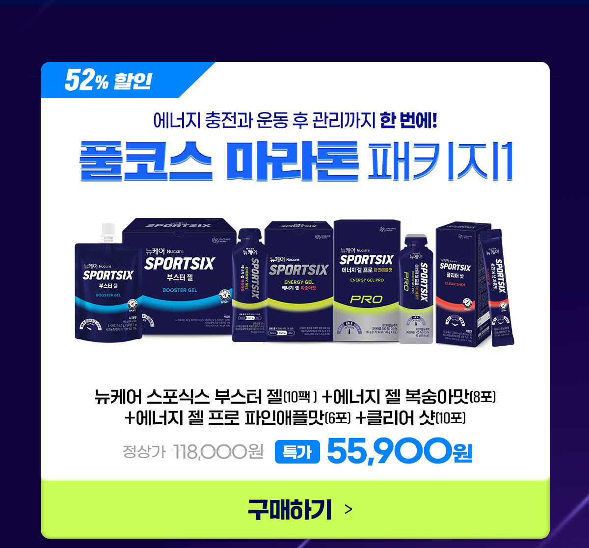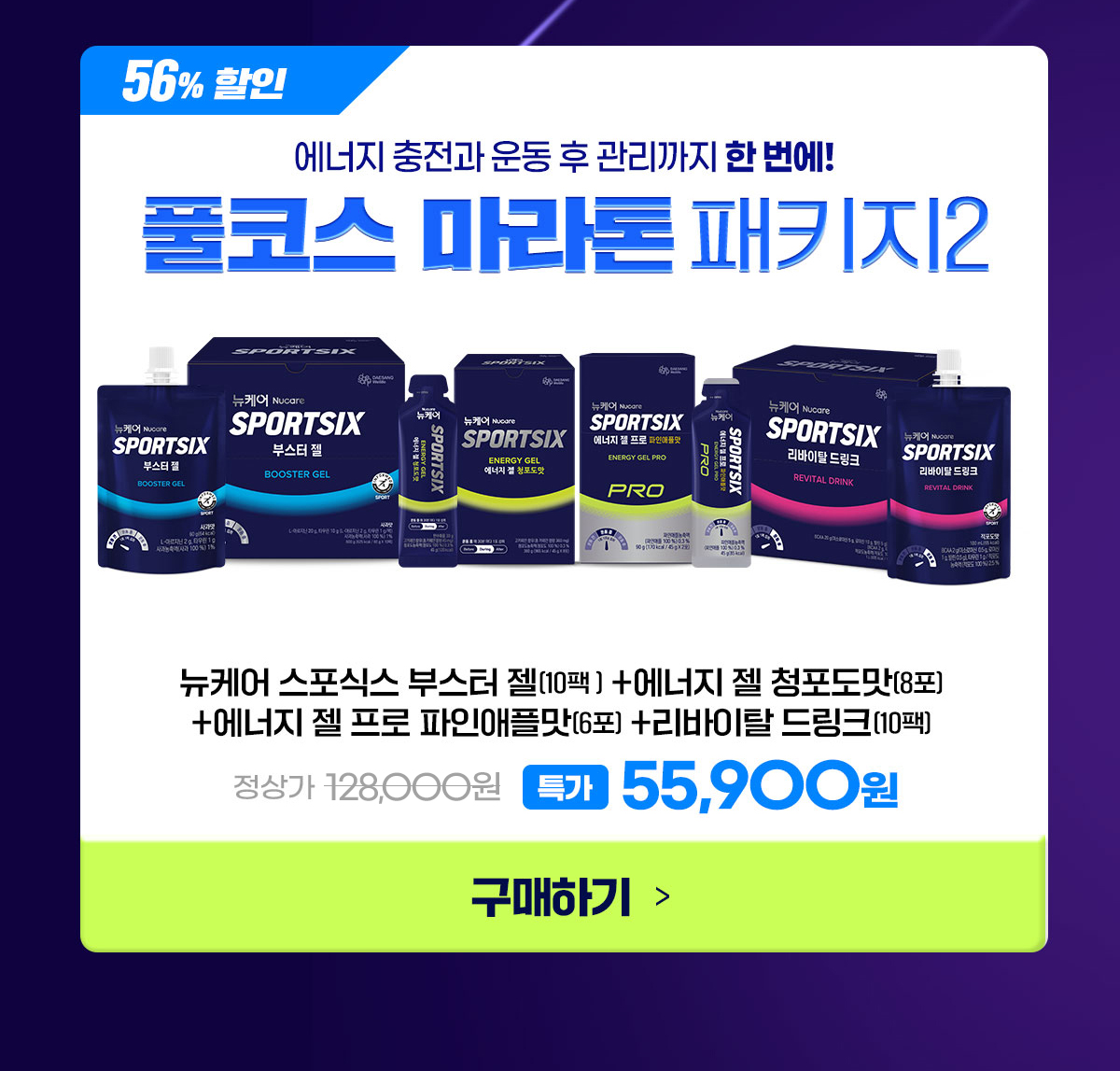 [풀코스 마라톤 패키지 2] 뉴케어 스포식스 부스터 젤 1EA + 에너지 젤 프로 파인애플맛 1EA + 에너지젤 청포도맛 1EA + 리바이탈 드링크 1EA