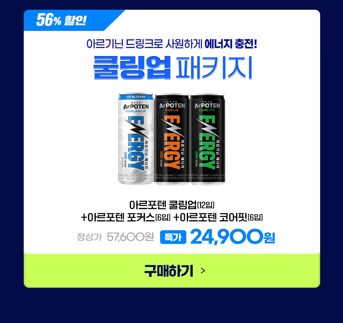 [쿨링업 패키지] 아르포텐(ArPOTEN) 쿨링업(12입) + 포커스(6입) + 코어핏(6입) / 총 24캔
