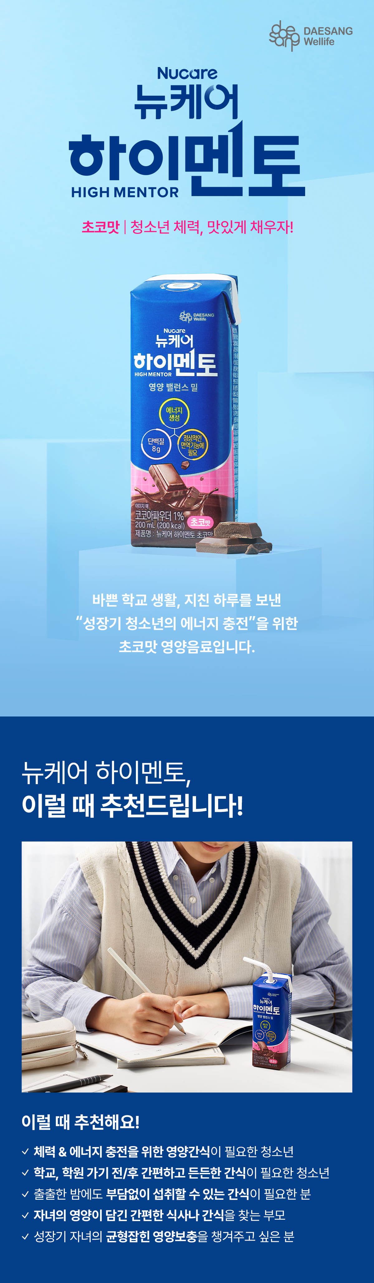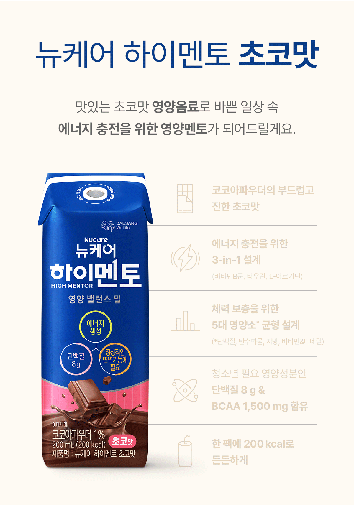 [체험팩] 뉴케어 하이멘토 초코맛 200ml (3입) - 쿠폰 적용X