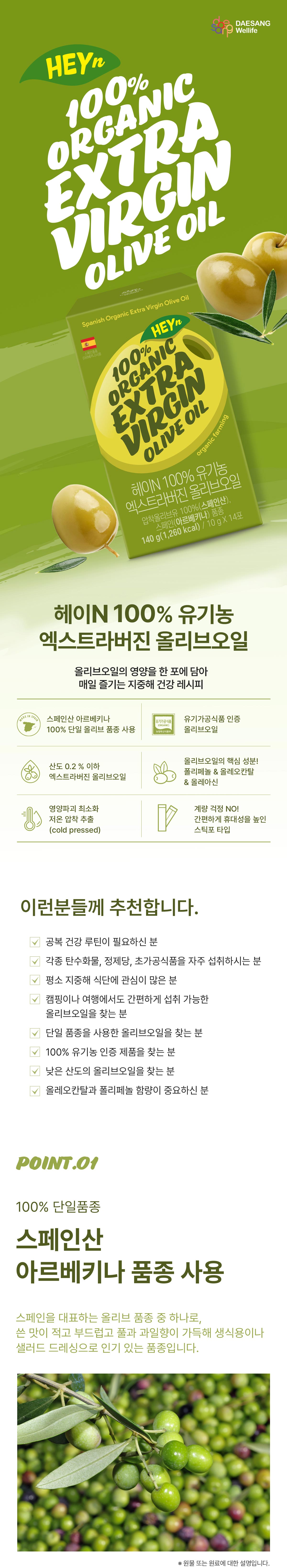 헤이N 100% 유기농 엑스트라버진 올리브오일 (10g x 14포)