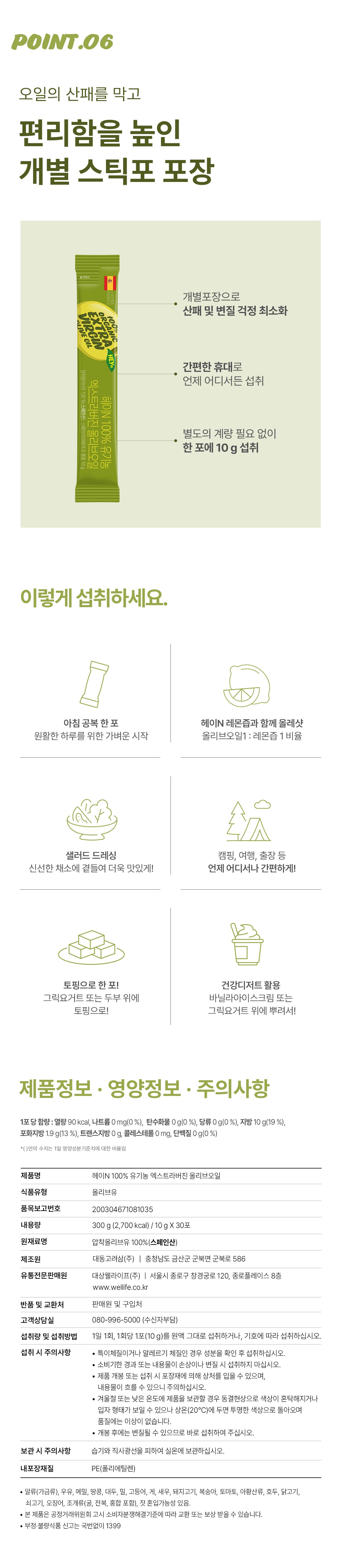 헤이N 100% 유기농 엑스트라버진 올리브오일 (10g x 30포)